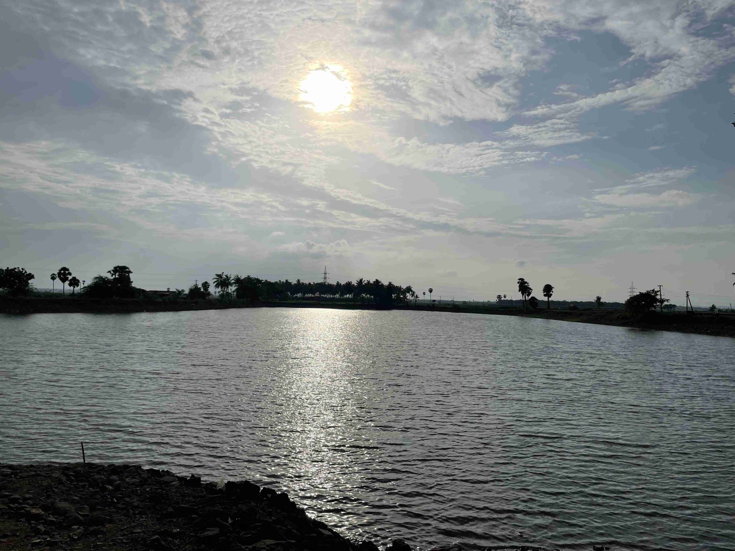A community’s treasure: water reflecting the sky, and the day’s last light